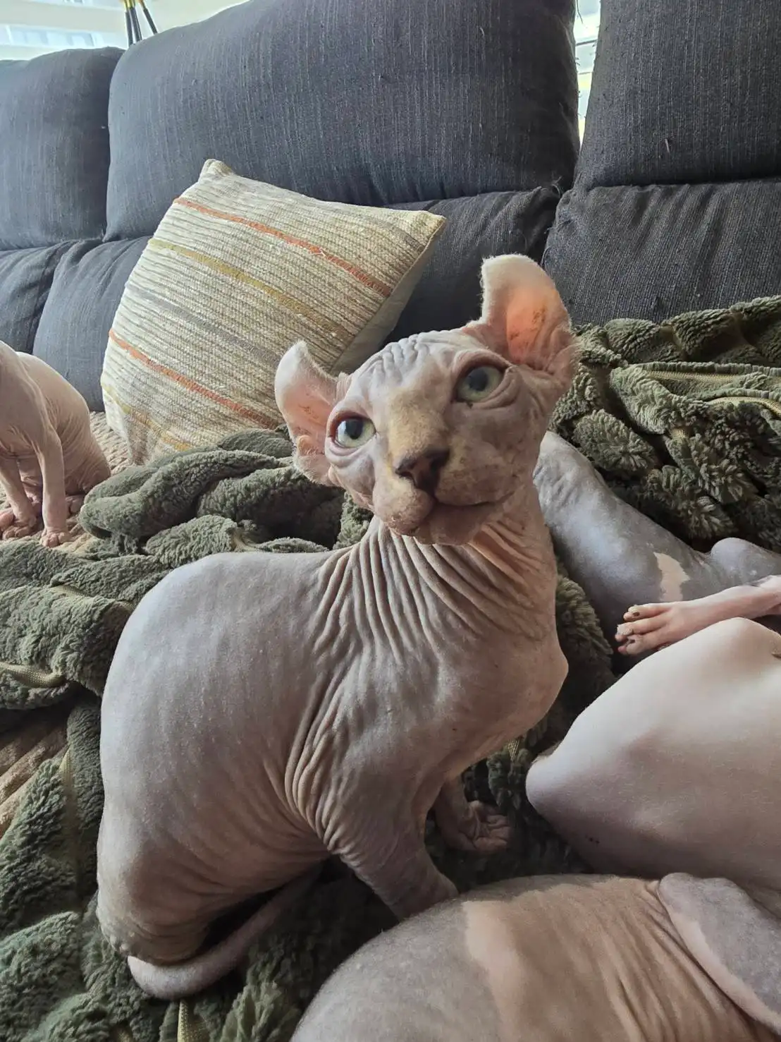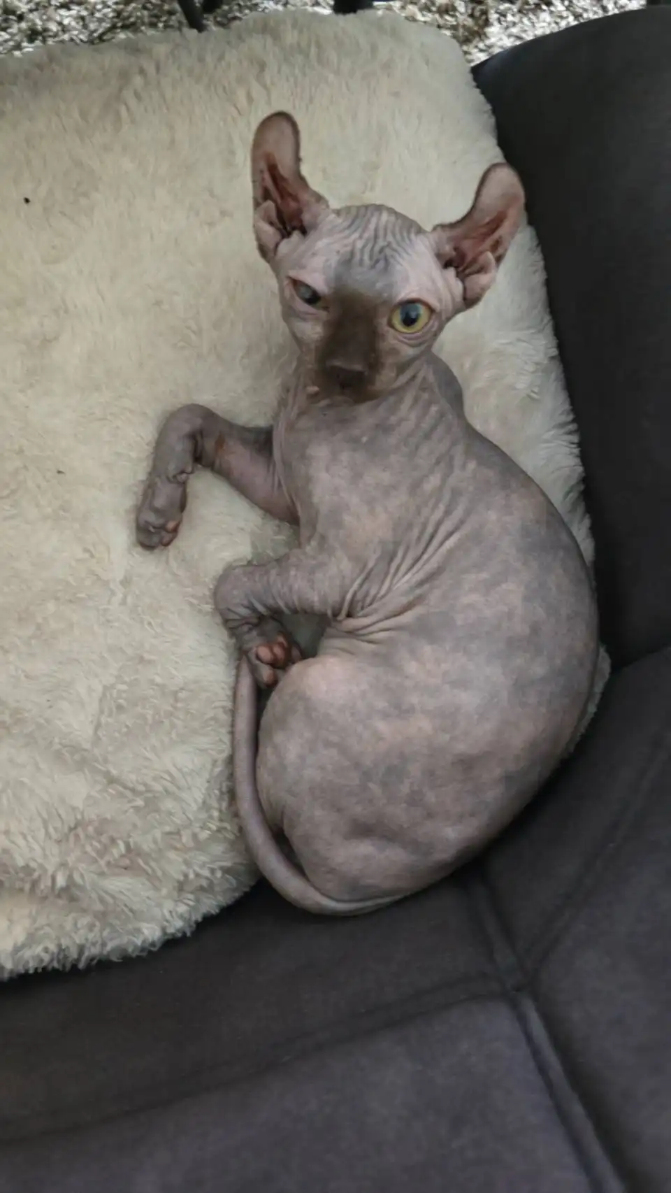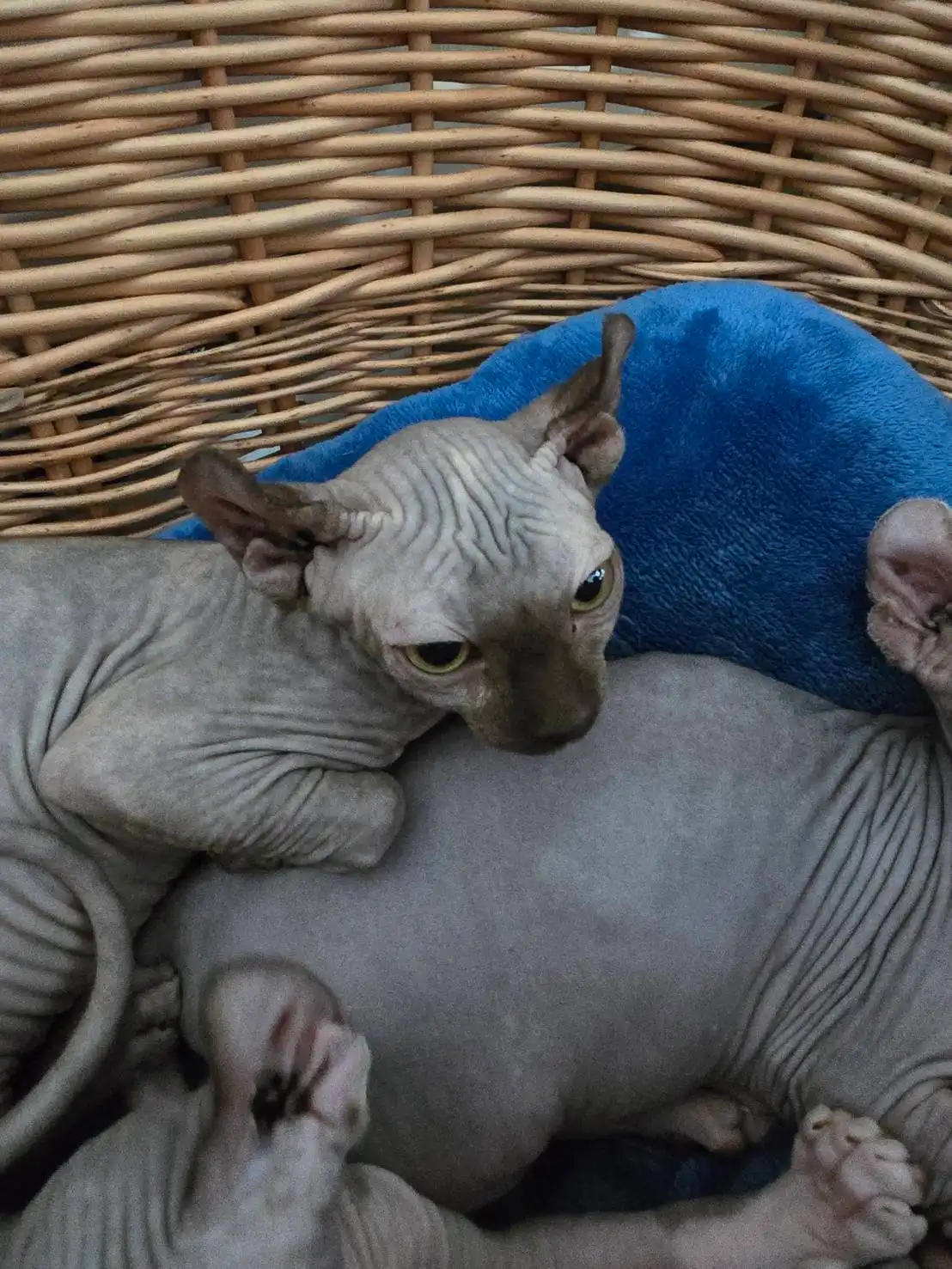 Nos chatons sphynx et elf peuvent quitter notre chatterie au bout des 14-15 semaines.